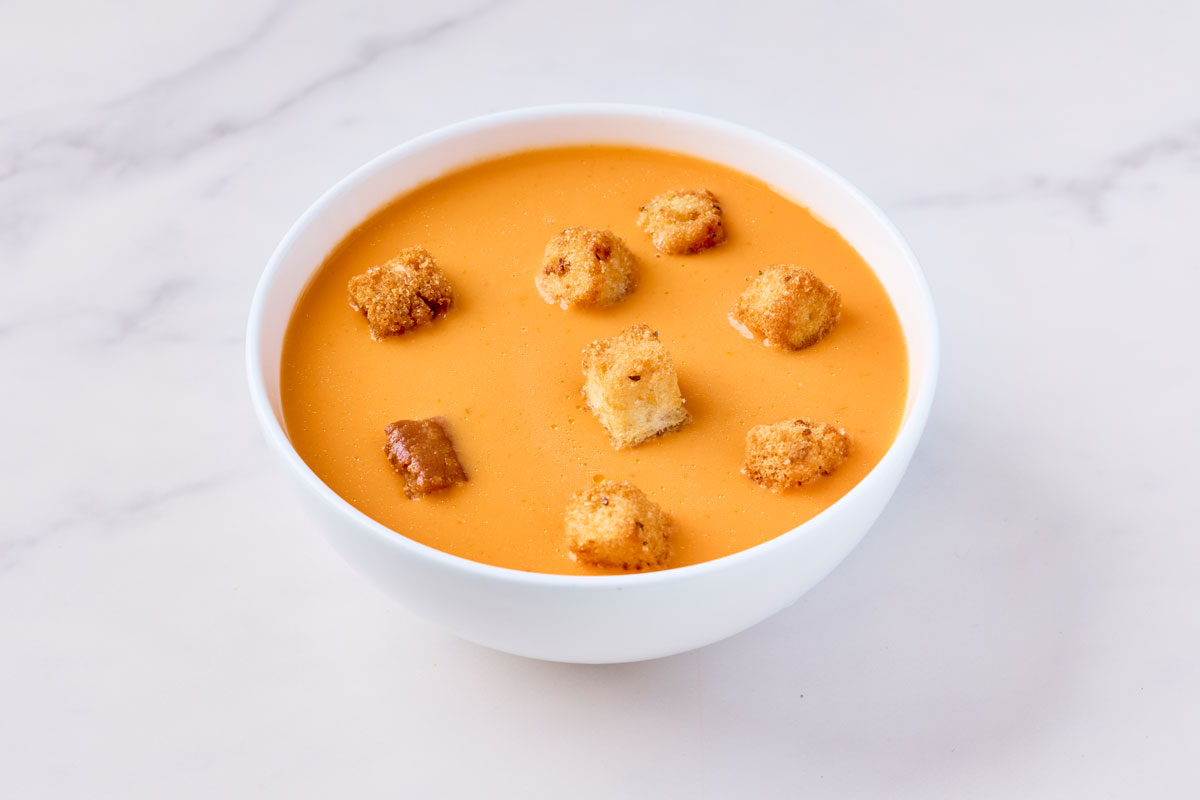 tomato, cucumber, & bell pepper, chilled and blended. topped with EVOO and homemade croutons *available only in Florida